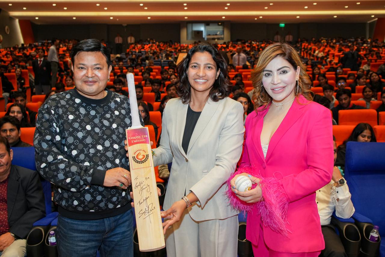 ग्राफिक एरा ग्रुप ऑफ इंस्टीट्यूशंस के चेयरमैन डॉ कमल घनशाला ने कहा कि घायल होने के बाद दुबारा नेशनल टीम में शामिल होना एक बहुत बड़ी चुनौती थी। स्नेह राणा ने पैर की चोट ठीक होने पर पांच साल बाद दुबारा नेशनल टीम में अपनी जगह बनायी। ये आसान नहीं था। 15-16 साल पहले जब महिला क्रिकेट कैरियर नहीं होता था, तब स्नेह राणा पर विश्वास जताते हुए उनके माता पिता ने इस क्षेत्र में आगे बढ़ने का अवसर दिया, यह बहुत बड़ी बात है। स्नेह राणा देश और खासकर उत्तराखंड की लड़कियों के लिए बहुत बड़ी प्रेरणा हैं। अब लड़कियां भी क्रिकेट में कैरियर बनाने का सपना देख और पूरा कर सकती हैं।