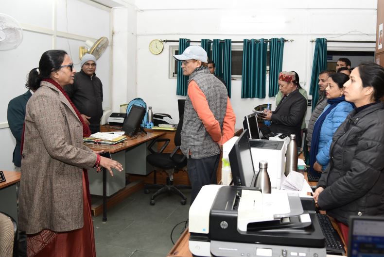 मुख्यमंत्री पुष्कर सिंह धामी के निर्देश पर शुक्रवार को सचिवालय स्थित मुख्यमंत्री अनुभागों का औचक निरीक्षण कर कार्यालयों की व्यवस्था, रिकॉर्ड मेंटनेस, साफ-सफाई आदि का जायजा लेते हुए एसीएस श्रीमती रतूड़ी ने सम्बन्धित अधिकारियों को अनुभागीय कार्यालयों को कार्मिकों के लिए गरिमापूर्ण वर्क इनवाइरमेंट बनाने के साथ ही कार्य संस्कृति में सुधार की भी नसीहत दी।
