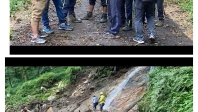 टिहरी के आपदा प्रभावित गेंवाली गांव में दवा बांटकर वापस लौट रहा स्वास्थ्य विभाग का एक कर्मचारी के ग़ेवाल गदेरे…