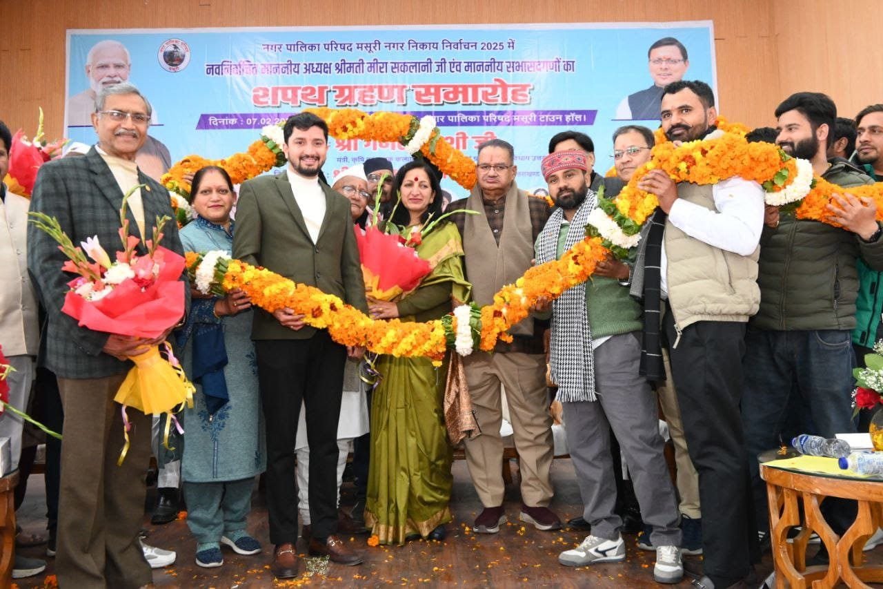 देहरादून ( राव शहजाद ) । कैबिनेट मंत्री गणेश जोशी ने मसूरी टाऊन हाल में नगर पालिका परिषद के नवनिर्वाचित अध्यक्ष मीरा सकलानी एवं सभासदगणों का शपथ ग्रहण समारोह में प्रतिभाग किया गया । इस ऐतिहासिक अवसर पर बीजेपी के प्रदेश महामंत्री (संगठन) अजेय कुमार और विधायक राजपुर खजान दास ने भी अपनी उपस्थिति दर्ज कराई। मसूरी के नगर पालिका टाउन हॉल में आयोजित शपथ ग्रहण समारोह भव्य रूप से संपन्न हुआ। कार्यक्रम में बड़ी संख्या में क्षेत्रवासी उपस्थित रहे। कैबिनेट मंत्री गणेश जोशी ने नव निर्वाचित अध्यक्ष मीरा सकलानी को पदभार ग्रहण करने पर भी बधाई एवं शुभकामनाएं दी। कैबिनेट मंत्री गणेश जोशी ने नगर पालिका परिषद की नवनिर्वाचित अध्यक्ष मीरा सकलानी एवं सभी सभासदगणों को बधाई देते हुए उनके उज्वल कार्यकाल की शुभकामनाएं दी। उन्होंने कहा कि यह मसूरी के लिए गर्व का क्षण है, कि पहली बार कोई महिला नगर पालिका अध्यक्ष बनी हैं। यह उपलब्धि नारी सशक्तिकरण और जन विश्वास की जीत को दर्शाती है। उन्होंने कहा कि यह विश्वास डबल इंजन सरकार और पार्टी के प्रति जनता की उम्मीदों को भी दर्शाता है।उन्होंने भाजपा पर भरोसा जताने के लिए मसूरीवासियों का आभार भी व्यक्त किया। मंत्री ने मसूरी के विकास को प्राथमिकता देने का संकल्प लिया और कहा कि हम सभी मिलकर मसूरी को विश्व के मानचित्र पर एक नई पहचान दिलाएंगे। उन्होंने कहा कि नई नगर पालिका टीम के नेतृत्व में मसूरी विकास के नए कीर्तिमान स्थापित करेगा। मौके पर पूर्व अध्यक्ष मन मोहन सिंह मल्ल, पूर्व विधायक जोत सिंह गुनसोला, मंडल अध्यक्ष राकेश रावत, मोहन पेटवाल, रजत अग्रवाल, ओपी उनियाल एवं नव निर्वाचित सभासदगण सहित अन्य मौजूद रहे ।