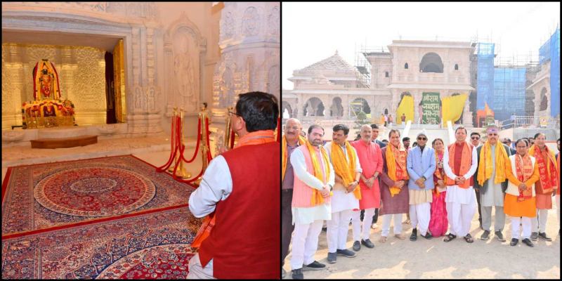 मंगलवार को मुख्यमंत्री पुष्कर सिंह धामी ने अपने कैबिनेट सहयोगियों के साथ अयोध्या में रामलला के दर्शन किए। इस दौरान सभी बेहद उत्साहित और भक्ति भाव में डूबे हुए नजर आए। मुख्यमंत्री पुष्कर सिंह धामी मंत्रिमंडल में अपने सहयोगियों सतपाल महाराज, प्रेमचंद अग्रवाल, सुबोध उनियाल, डॉ धन सिंह रावत, रेखा आर्य एवं राज्यसभा सांसद नरेश बंसल के साथ जॉलीग्रांट एयरपोर्ट पहुंचे, जहां से वे अयोध्या धाम के लिए रवाना हुए। अयोध्या में महर्षि वाल्मीकि अंतरराष्ट्रीय हवाई अड्डा में पहुंचे पर मुख्यमंत्री धामी और उनके सहयोगियों का भव्य स्वागत हुआ। इस दौरान पूरा परिसर जय श्रीराम के नारों से गूंज उठा। यहां से वह राम जन्मभूमि के लिए रवाना हुए। मुख्यमंत्री एवं उनके सहयोगी श्री अयोध्या धाम में प्रभु राम को साष्टांग नमन कर पूजा अर्चना की।