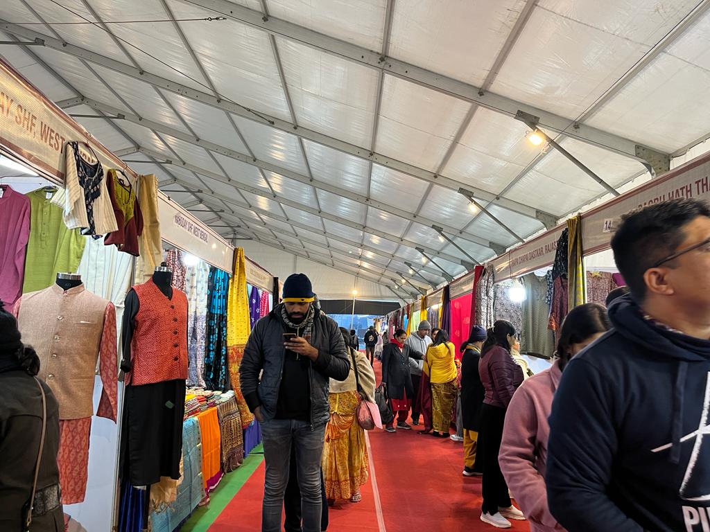 इस स्टेट हैंडलूम एक्सपो में एक स्टाल धरती ग्राम हैंडलूम वेस्ट बंगाल से है ,जिसका सारा काम हैंडवर्क से होता हैं ।इसमें एक सोसाइटी के अंदर 150 लोग काम करते हैं ।मुग़ासिल्क ,हैंड पेंटिंग ,कॉटन में जमधनी सूट आदि ज़ैसे कपड़े हैं ।इनके पास बंगाल की ट्रेडिशनल साड़ी बाल्यूचेली प्योर रेशम में हैं ।इनके पास बहुत ही सुन्दर मालवाड़ीं सिल्क की साड़ी भी हैं। जिसमे महाभारत से जुड़े कुछ दृश्य का काम किया गया हैं ।