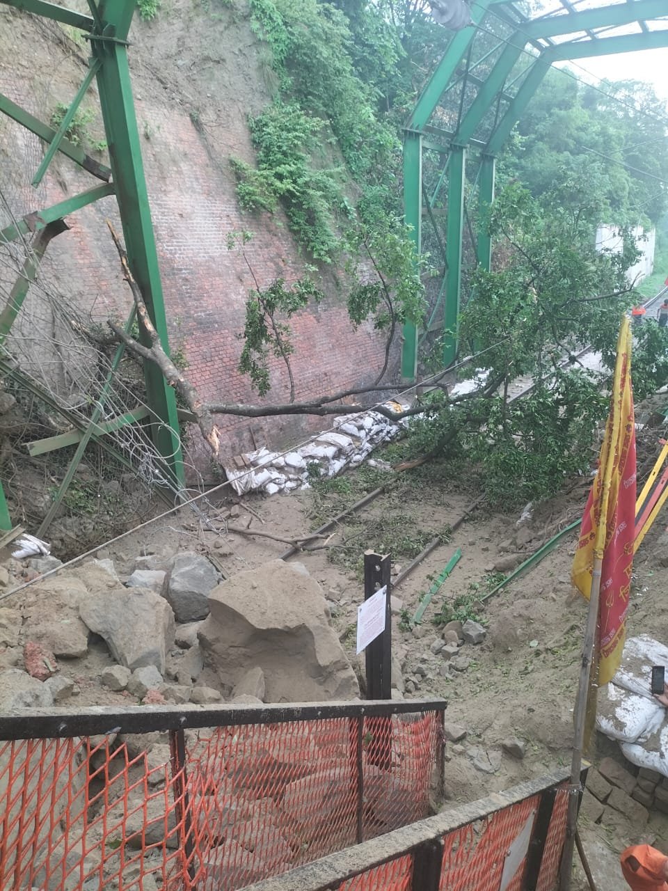 उत्तर रेलवे के मुरादाबाद मंडल में हरिद्वार और मोतीचूर के बीच रेल मार्ग पर आज सुबह करीब 6:40 बजे भूस्खलन हो गया। पहाड़ के भारी टुकड़े और पेड़ गिरने से ओएचई (ओवरहेड इक्विपमेंट) को नुकसान पहुंचा है, जिससे यह मार्ग बाधित हो गया है। इसके चलते हरिद्वार से आगे देहरादून, योगनगरी ऋषिकेश और ऋषिकेश जाने वाली रेल सेवाएं प्रभावित हुई हैं।