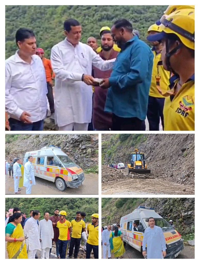 भूस्खलन में फंसी एंबुलेंस को बचाने के लिए सांसद बलूनी ने खुलवाया रास्ता, जेसीबी ड्राइवर को मोबाइल किया गिफ्ट