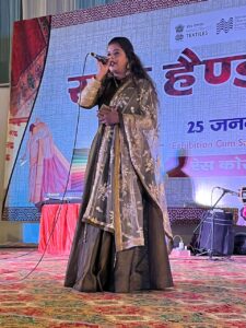 स्टेट हैंडलूम एक्सपो में इस बार एक स्टाल धरती ग्राम हैंडलूम वेस्ट बंगाल से है ,जिसका सारा काम हैंडवर्क से होता हैं । इसमें एक सोसाइटी के अंदर 150 लोग काम करते हैं ।मुग़ासिल्क ,हैंड पेंटिंग ,कॉटन में जमधनी सूट आदि ज़ैसे कपड़े हैं ।इनके पास बंगाल की ट्रेडिशनल साड़ी बाल्यूचेली प्योर रेशम में हैं ।इनके पास बहुत ही सुन्दर मालवाड़ीं सिल्क की साड़ी भी हैं जिसमे महाभारत से जुड़े कुछ दृश्य के काम हैं। इनका मूल्य 1000 रुपए से 25,000 रुपए तक का हैं ।इसके अलावा इनके पास बहुत ही सुन्दर दुपट्टे ,साड़ी ,शौल आदि जैसी सारे कपड़े हैंडवर्क से बनाय गाए हैं जो की दिखने में बहुत ही सुंदर हैं और लोगों को काफ़ी पसंद आ रहें हैं ।