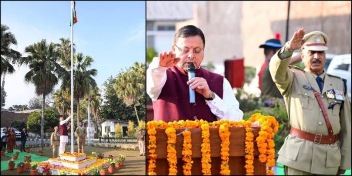 मुख्यमंत्री पुष्कर सिंह धामी ने गणतंत्र दिवस के अवसर पर मुख्यमंत्री आवास में राष्ट्रीय ध्वज फहराया। इस अवसर पर उन्होंने सभी को संविधान की उद्देशिका की शपथ दिलाई। मुख्यमंत्री पुष्कर सिंह धामी ने सभी प्रदेशवासियों को गणतंत्र दिवस की शुभकामना देते हुए कहा कि प्रधानमंत्री नरेन्द्र मोदी के एक भारत, श्रेष्ठ भारत के संकल्प को पूरा करने के लिए हम सबको मिलकर योगदान देना होगा। उन्होंने कहा कि प्रधानमंत्री नरेंद्र मोदी के साढ़े नौ साल के कार्यकाल में हर वर्ग को ध्यान में रखते हुए योजनाओं का लाभ दिया गया। महिला सशक्तिकरण की दिशा में अनेक कार्य हुए है।