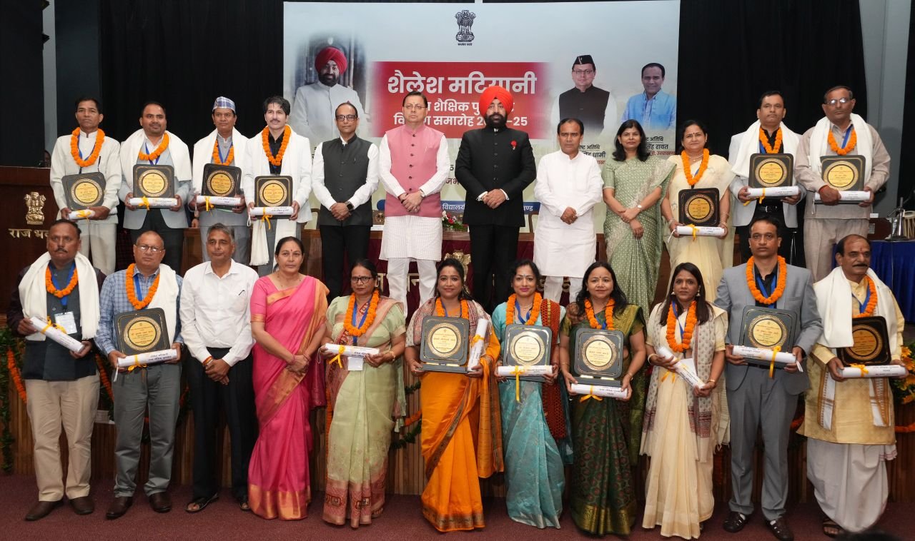 शिक्षक दिवस के अवसर पर शुक्रवार को राजभवन में ‘‘शैलेश मटियानी राज्य शैक्षिक पुरस्कार’’ सम्मान समारोह आयोजित हुआ। समारोह में राज्यपाल लेफ्टिनेंट जनरल गुरमीत सिंह (से नि), मुख्यमंत्री  पुष्कर सिंह धामी और शिक्षा मंत्री डॉ. धन सिंह रावत ने वर्ष-2024 में शैलेश मटियानी राज्य शैक्षिक पुरस्कारों के लिए चयनित 16 शिक्षक एवं शिक्षिकाओं को सम्मानित किया। वर्ष-2024 में चयनित 09 प्रारम्भिक शिक्षक, 05 माध्यमिक शिक्षक, 01 शिक्षक प्रशिक्षक एवं 01 संस्कृत शिक्षक को यह सम्मान प्रदान किया गया है। (सूची संलग्न)